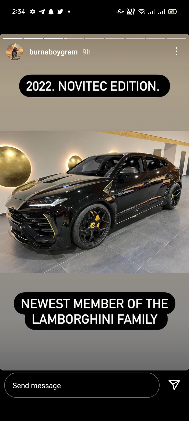 Nigeria two times Grammy Award Winner Damini Ebunoluwa Ogulu, known as Burna Boy, A Nigerian singer, rapper and songwriter has just gifted himself a pretty remarkable piece of machinery, a 2022 Lamborghini Urus cost total purchase price of ₦253,946000 excluding shipping and customs fee, this Urus Novitec Edition was upgraded by Novitec Group making it more powerful and revising its stance. Novitec Group is a Luxury vehicles company that specializes in modifications for Italian marques such as Ferrari, Fiat and Lamborghini.